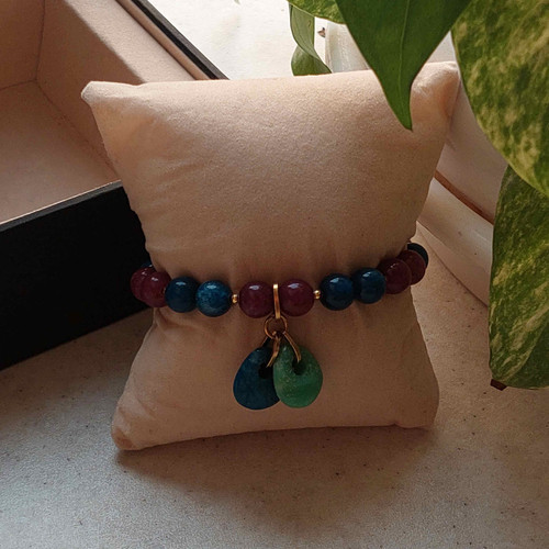 دستبند سبز دستبند آونتورین و چشم ببر با سکه های برنزی