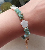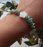 این دستبند ترکیبی است از صدف رنگ آمیزی شده به رنگ آبی آسمانی و فیروزه ای و صدف سفید پنج پر که قطعه ای از طبیعت را به دستان شما هدیه میدهد.